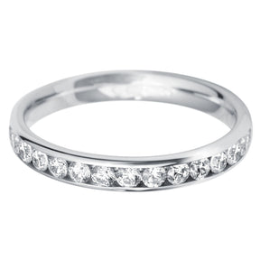 Presented In a traditional channel set band, this beautifully crafted eternity ring is available in either luxurious platinum, 18ct or 9ct gold in the colour of your choice yellow, white or rose and a variety of diamond weights.
